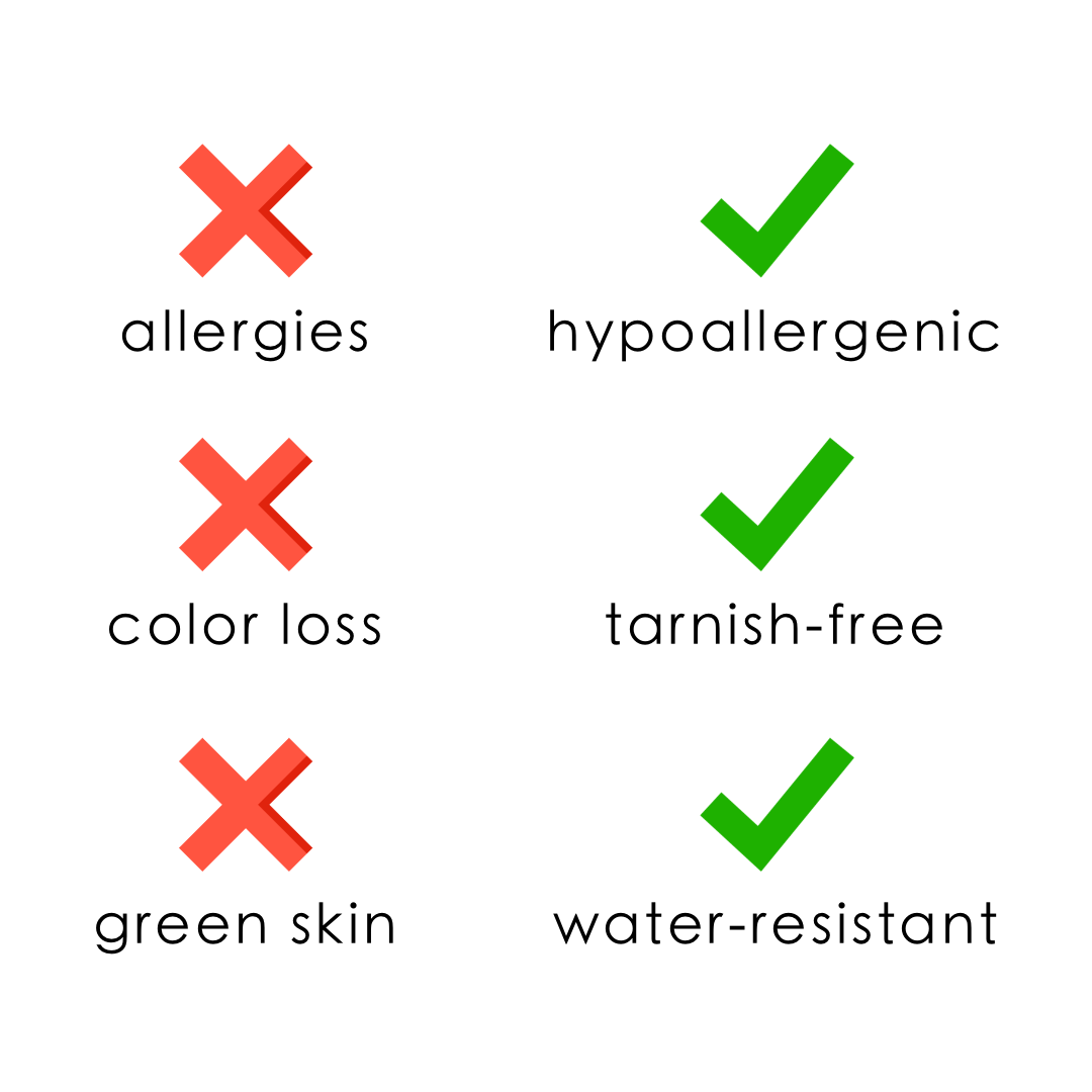 Water-resistant & tarnish-free: No discoloration, no green skin